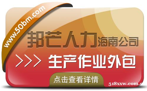 海南生产作业外包尽在邦芒人力 ,真正为您做到降低成本,分散风险,提高效率,增强企业竞争力,让企业平均生产成本节约9%,生产能力和质量平均提高15%。海南邦芒人力资源优质服务为一次完美旅程,这里没有终点,只有起点,不断提升服务的标准和目标,一次次持续提升!以客户导向完善产品、服务、技术及团队再造。